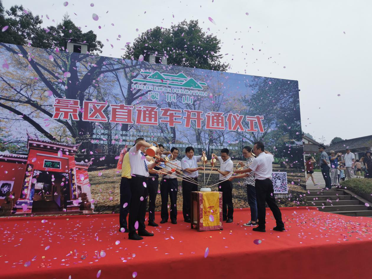 8月25日上午10:30分,成都至蒙顶山景区旅游直通车首发仪式在蒙顶山景区隆重举行。雅安市人民政府副市长朱涛、雅安市文化体育和旅游局局长杨建光、雅安市林业局局长杨茂雄、雅安文化旅游集团有限责任公司总经理朱波、雅安市名山区文化体育和旅游局局长侯海鹰及蒙顶山景区负责人和各大旅行社代表、直通车游客及新闻媒体等近200人出席了此次开通仪式。