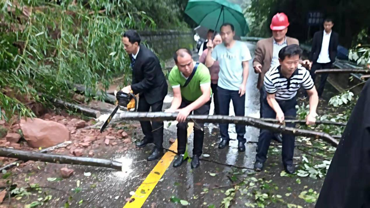 9月14日,蒙顶山旅游公司上班员工到达塌方地点,公司负责人立即组织道路抢通。从发现塌方到清除路障,仅用了不到30分钟的时间,确保了蒙顶山旅游公路的畅通。