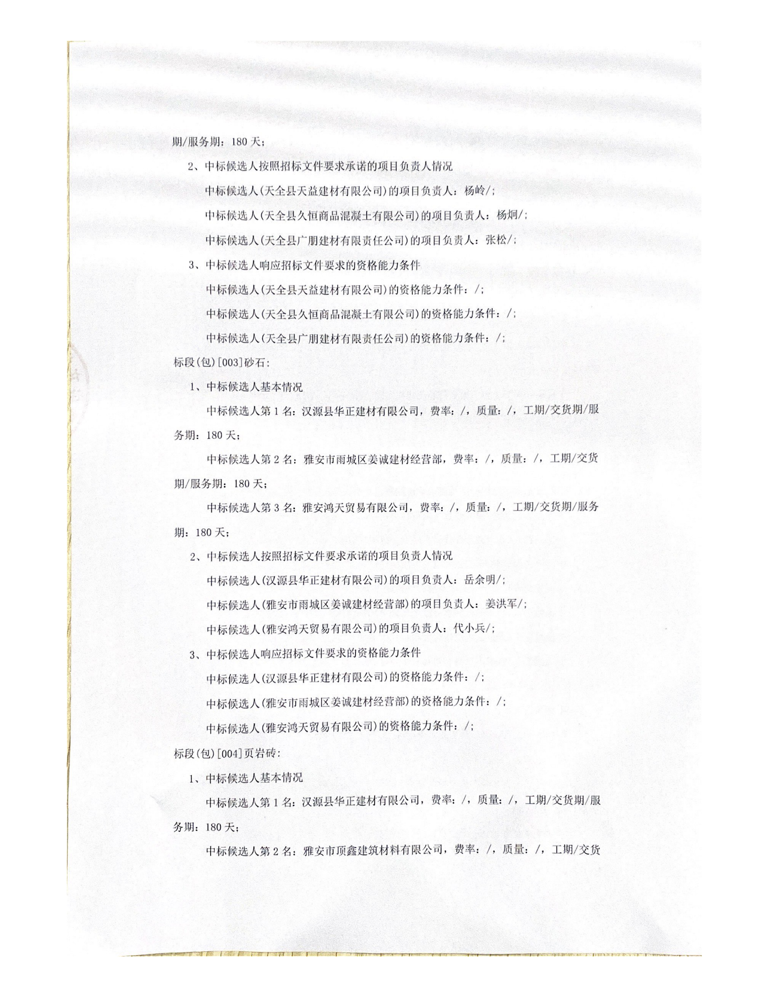 雅安味道核心区三雅园提升改造项目钢筋、商品混凝土、砂石、砖、水泥供应商中标候选人公示