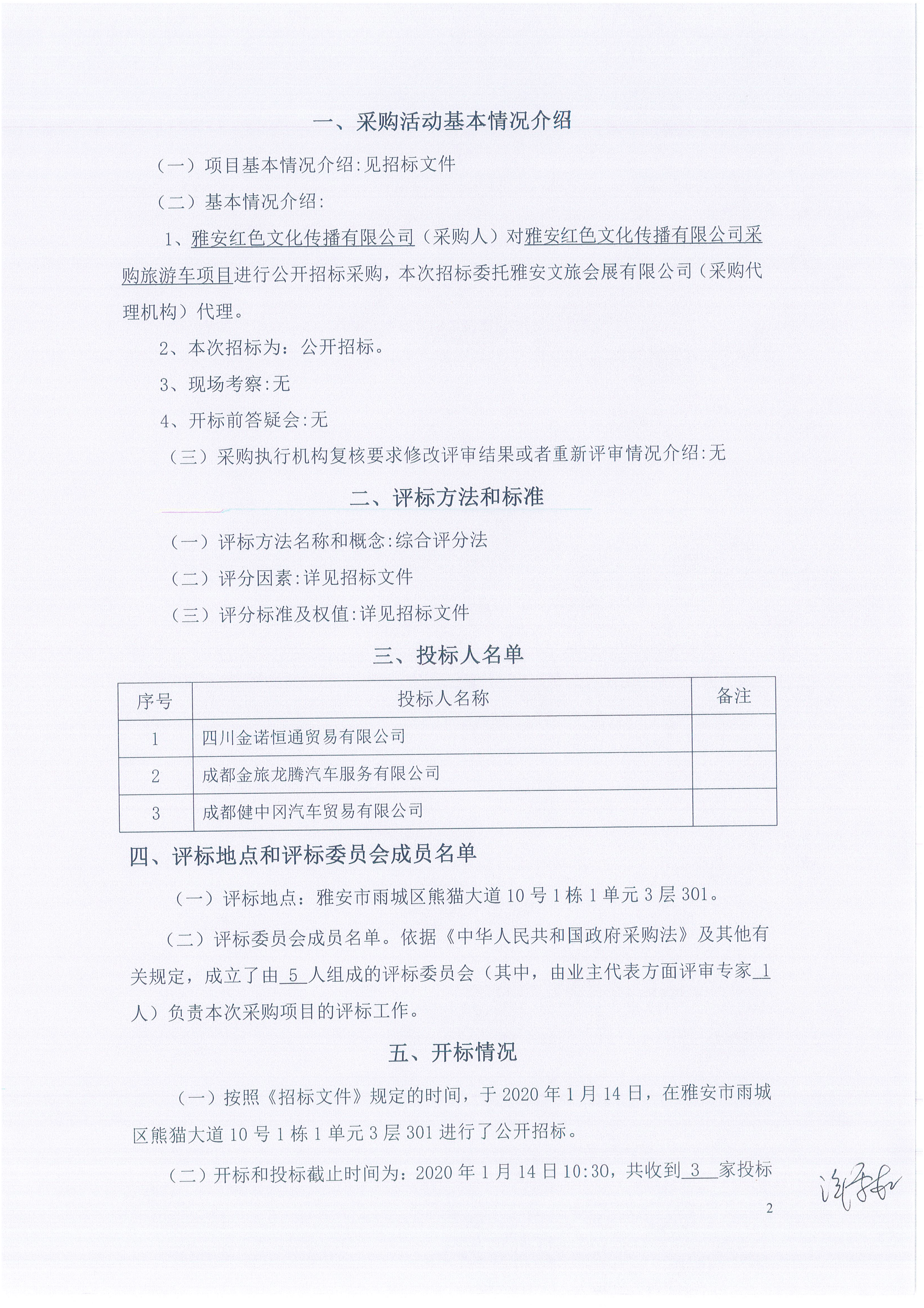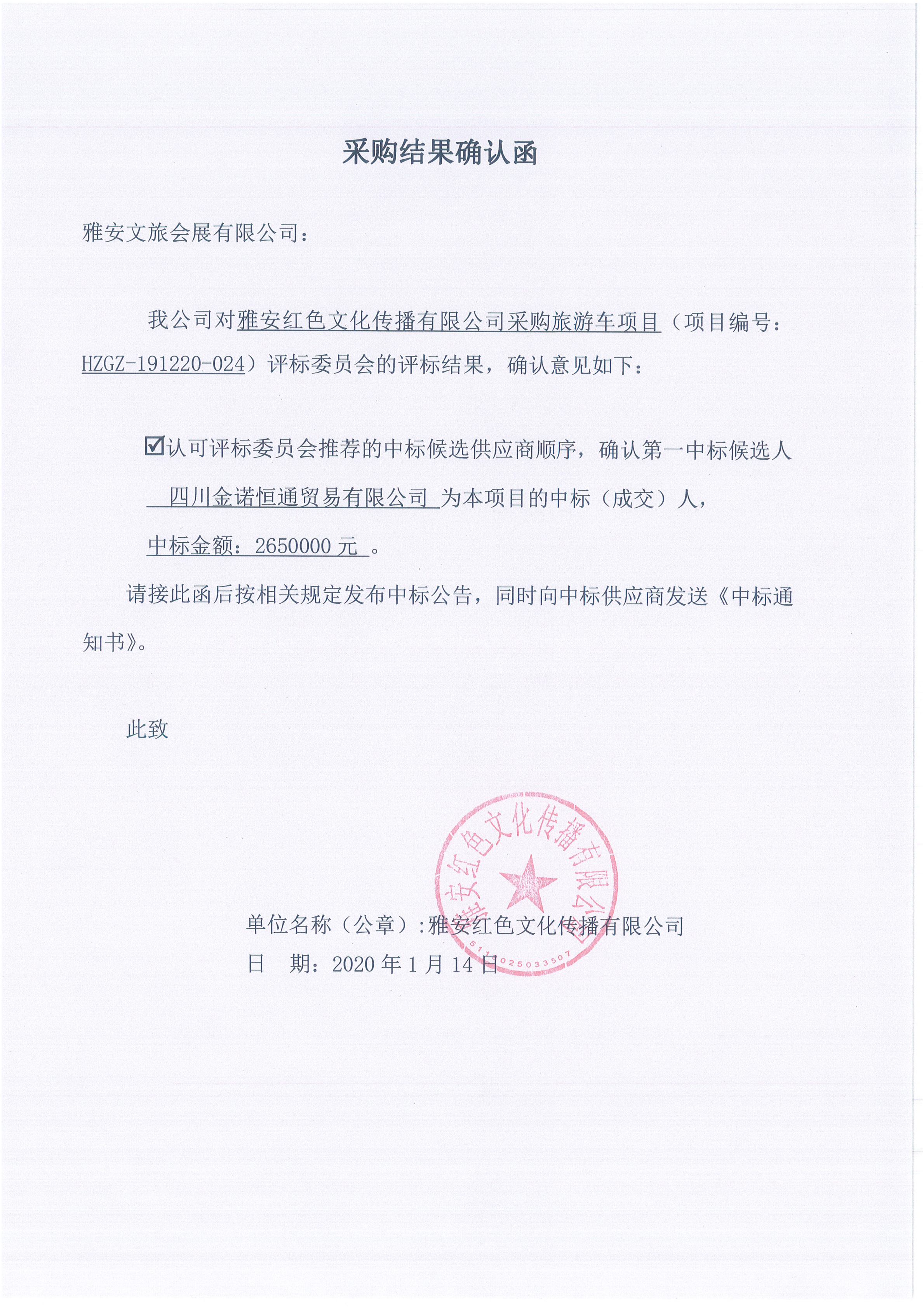 雅安红色文化传播有限公司采购旅游车项目结果公示