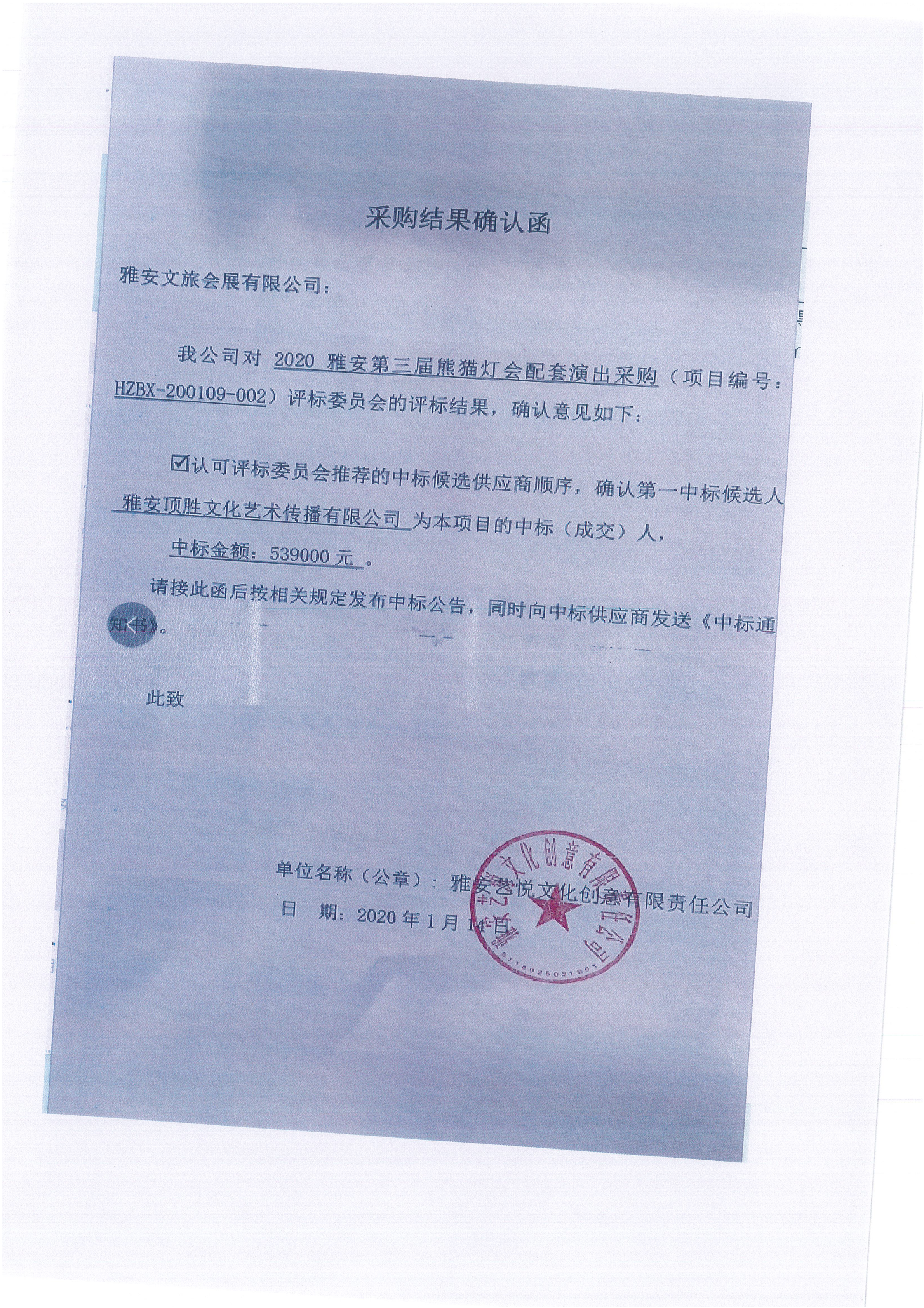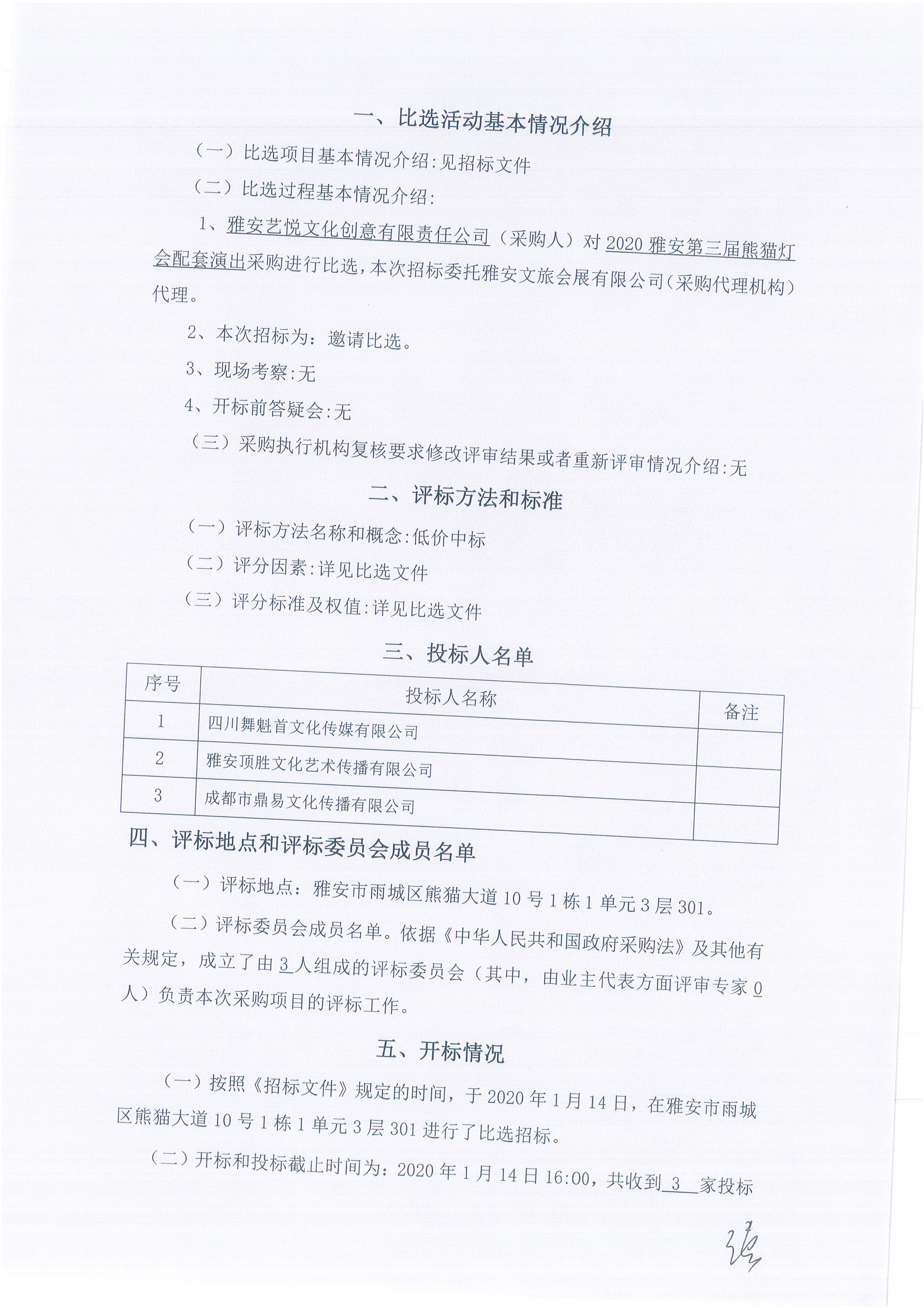 2020雅安第三届熊猫灯会配套演出采购结果公示