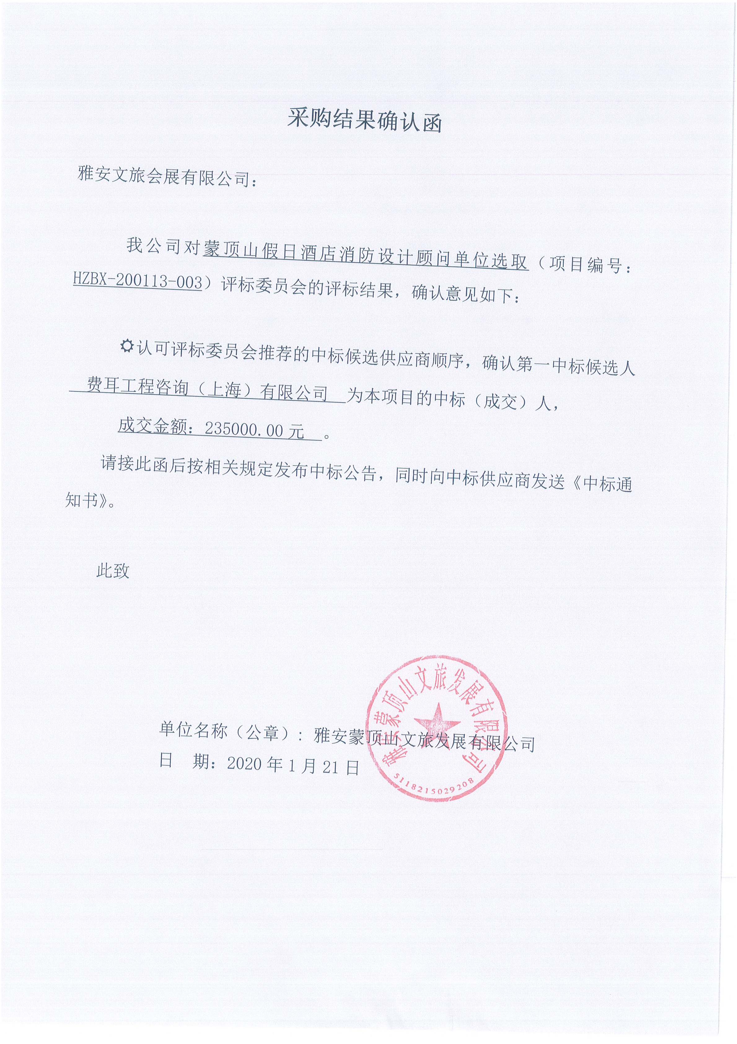 蒙顶山假日酒店消防设计顾问单位选取项目 结果公示公告