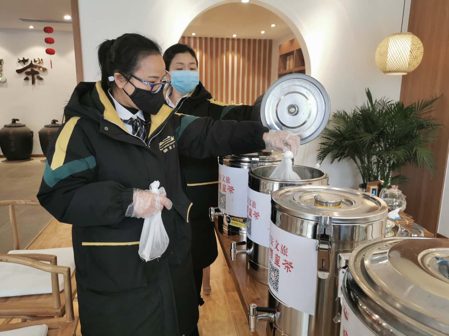 从购买物料到冲泡茶叶,蒙顶皇茶公司严格把控每一个小细节,全程防护、消毒,精心用品牌矿泉水冲泡。看着热情腾腾的保温桶,名山高速路口执勤点一名同志说:“谢谢你们!我们每天喝着冰冷的矿泉水,今天终于有热茶喝了,太好了!”