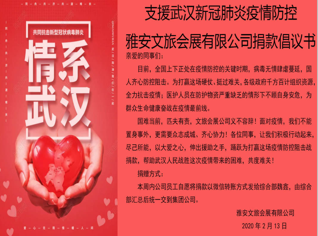 文旅会展公司党员干部讲政治勇担当、迎严寒战风雪,义无反顾抗击疫情最前沿,号召公司全体员工献爱心支援武汉新冠肺炎疫情防控,募集爱心款4200元;带动项目现场