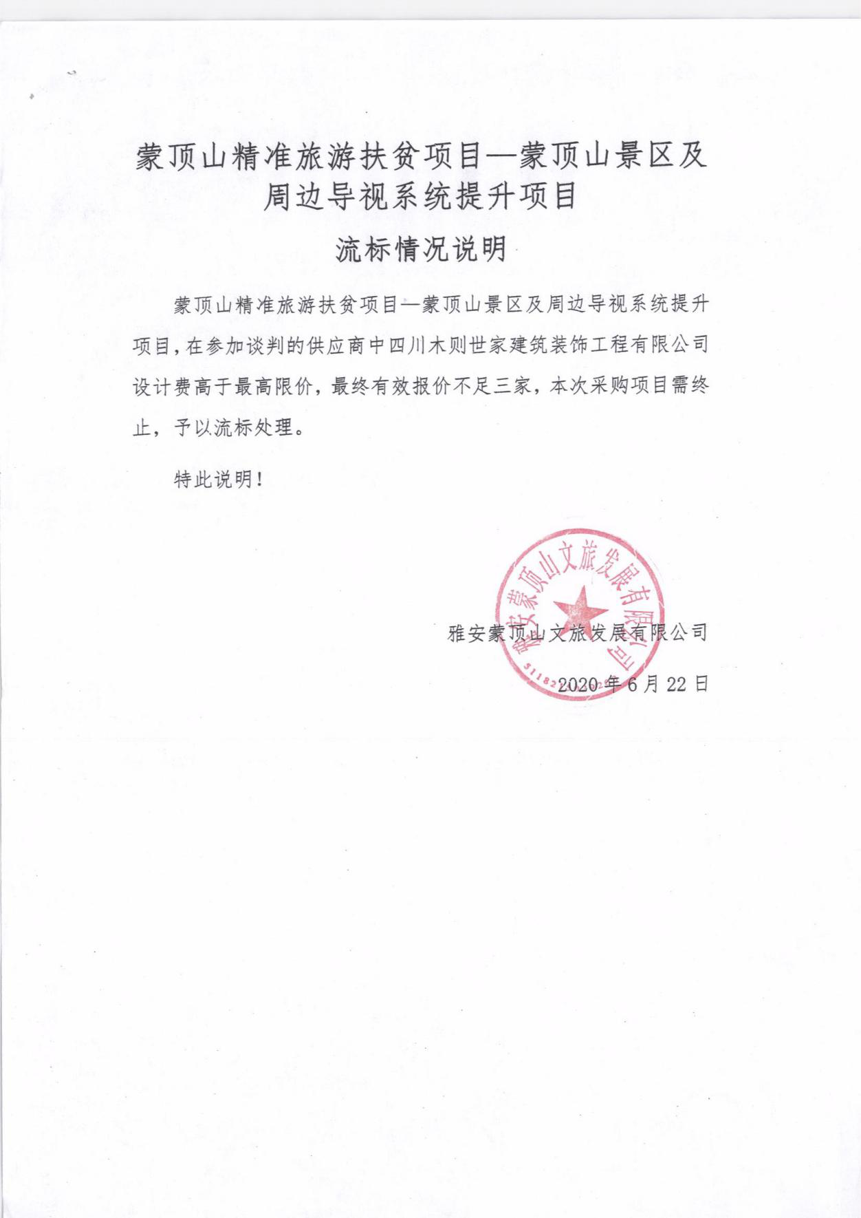 蒙顶山精准旅游扶贫项目—蒙顶山景区及周边导视系统提升项目 流标情况说明