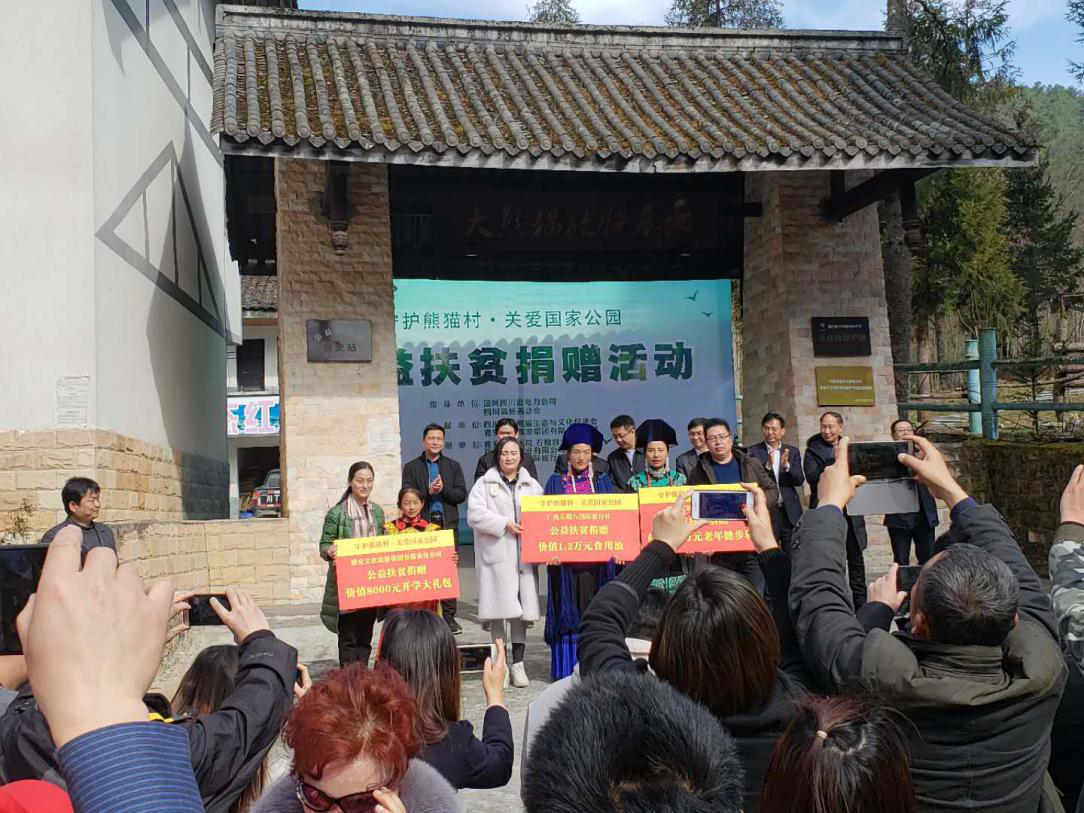 2月14日,“关爱熊猫村、守护国家公园”公益扶贫捐赠活动在石棉县栗子坪大熊猫放归基地举行。