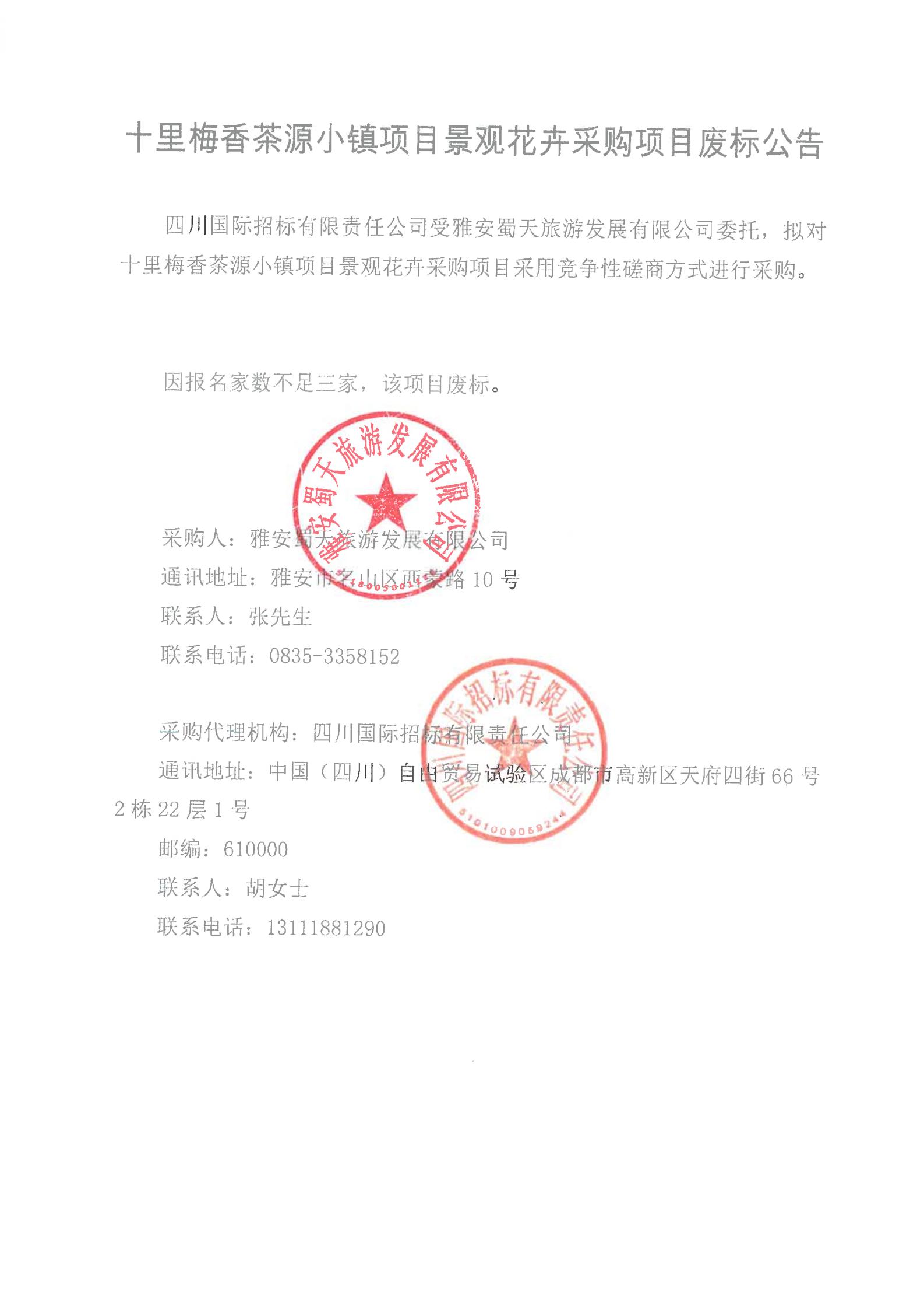 十里梅香茶源小镇项目景观花卉采购项目废标公告