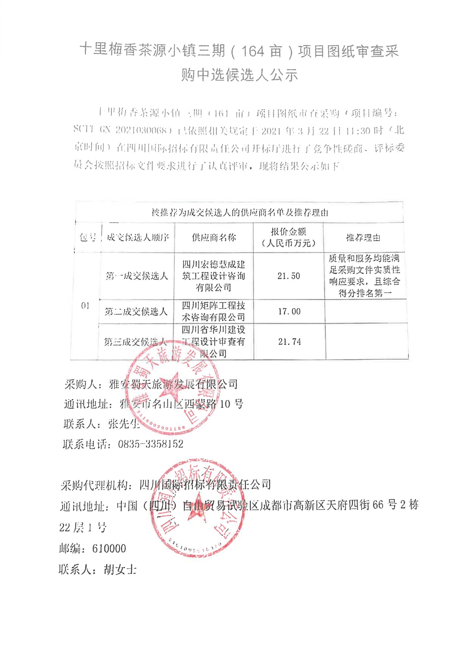 十里梅香茶源小镇三期(164亩)图纸审查采购中选候选人公示