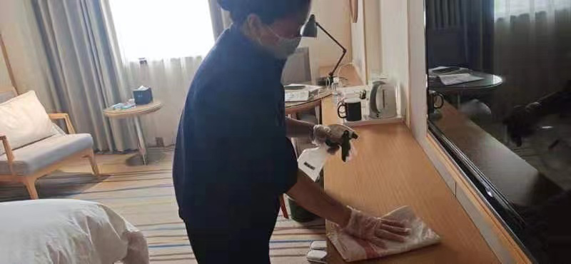 按照防疫工作要求,持续开展疫情防控工作,每日对会议室、餐厅、客房、电梯等区域进行消杀;做好防疫物质储备,在会议室、餐厅、客房等区域放置口罩、消毒纸巾、消毒凝胶等防疫物质;对清洁卫生进行全面提升,会议室、餐厅、客房等区域卫生进行细化清理,营造整洁良好的会议环境。