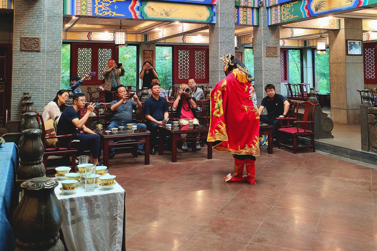 调研组一行先后参观了蒙顶山世界茶文化博物馆及从天盖寺至皇茶园的茶文化景点,欣赏川剧变脸、吐火、蒙顶山龙行十八式茶技表演,了解蒙顶山源远流长的茶文化、茶马文化。