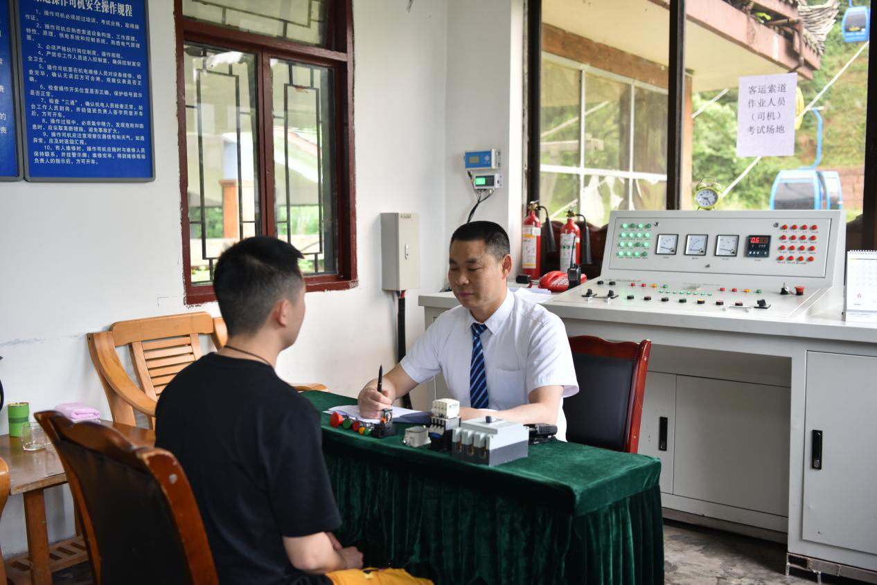 2021年6月21日上午,四川省特种设备检验研究院考试中心主任阳晓薇一行组织全省第一期客运索道作业人员在蒙顶山索道进行实操考试,共计60余人。