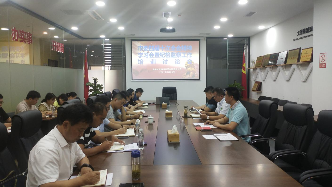 7月29日下午,欧美色情 纪委在集团会议室组织召开市委四届十次全会精神学习会暨纪检监察工作培训讨论会。党委副书记、总经理朱波同志出席会议并讲话,纪检监察室主任胡毅同志主持会议,集团及子公司全体纪检监察工作人员参会。