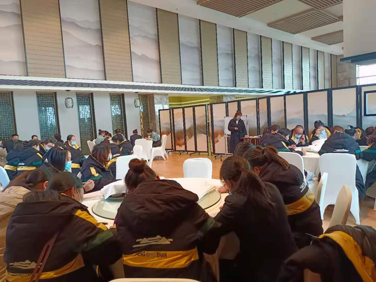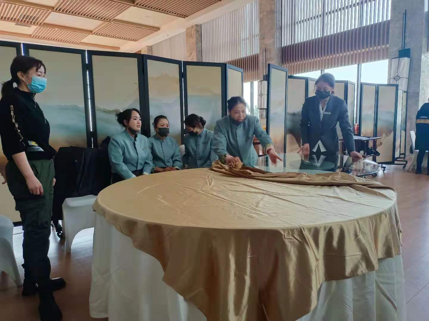 为提高蒙顶山旅游景区服务质量,提升员工服务能力和服务水平,11月3日,由名山区总工会主办,四川省名山蒙顶山旅游开发有限责任公司、雅安思伽职业培训学校承办的2021年省总工会帮扶服务项目“餐厅宴会摆台”培训开班仪式在蒙顶山假日度假酒店举行。雅安市名山区总工会常务副主席牟建伟、雅安市思伽职业培训学校校长李权、四川省名山蒙顶山旅游开发有限责任公司董事长张京出席开班仪式。