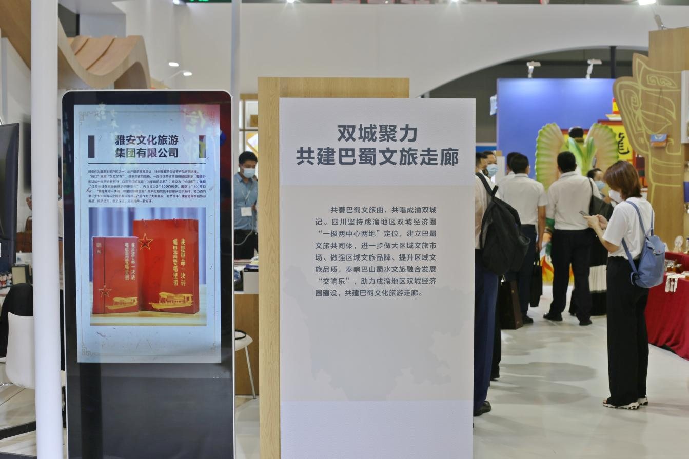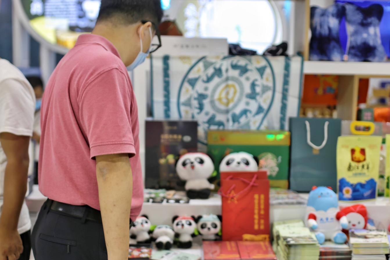 在“成渝地区双城经济圈建设文化展区”,雅安有礼.砖红和雅雅安安系列公仔等文创产品以实物方式展出,蒙顶山旅游景区、雅安熊猫会展博览馆两项文产项目以“视频+海报”的形式展示。