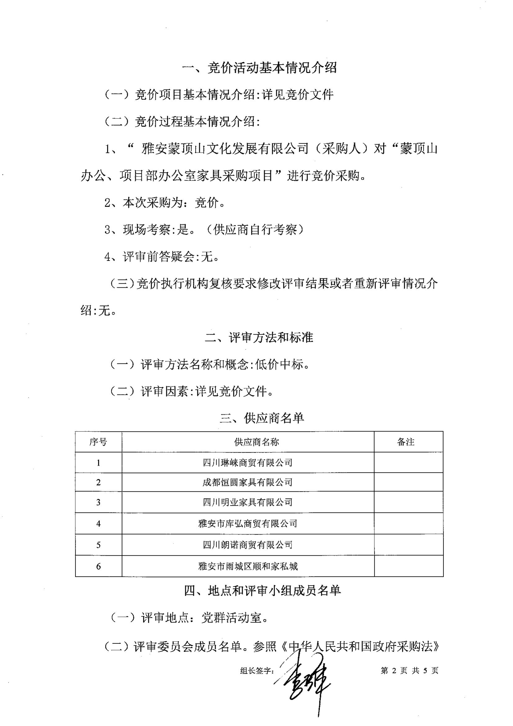 蒙顶山办公室、项目部办公家具评审报告