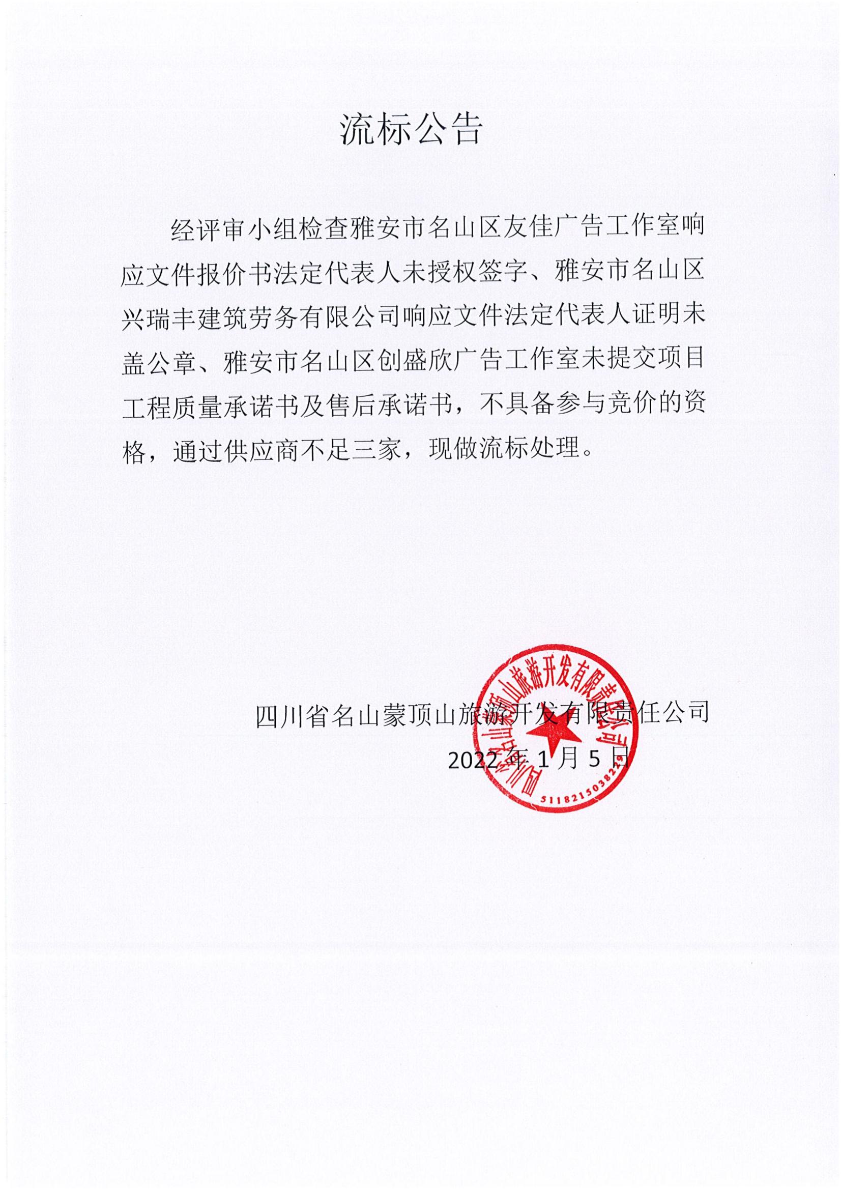蒙顶山银杏餐厅柴火鸡长廊及银杏树下平台设施改造提升项目供应商资格审查流标公告