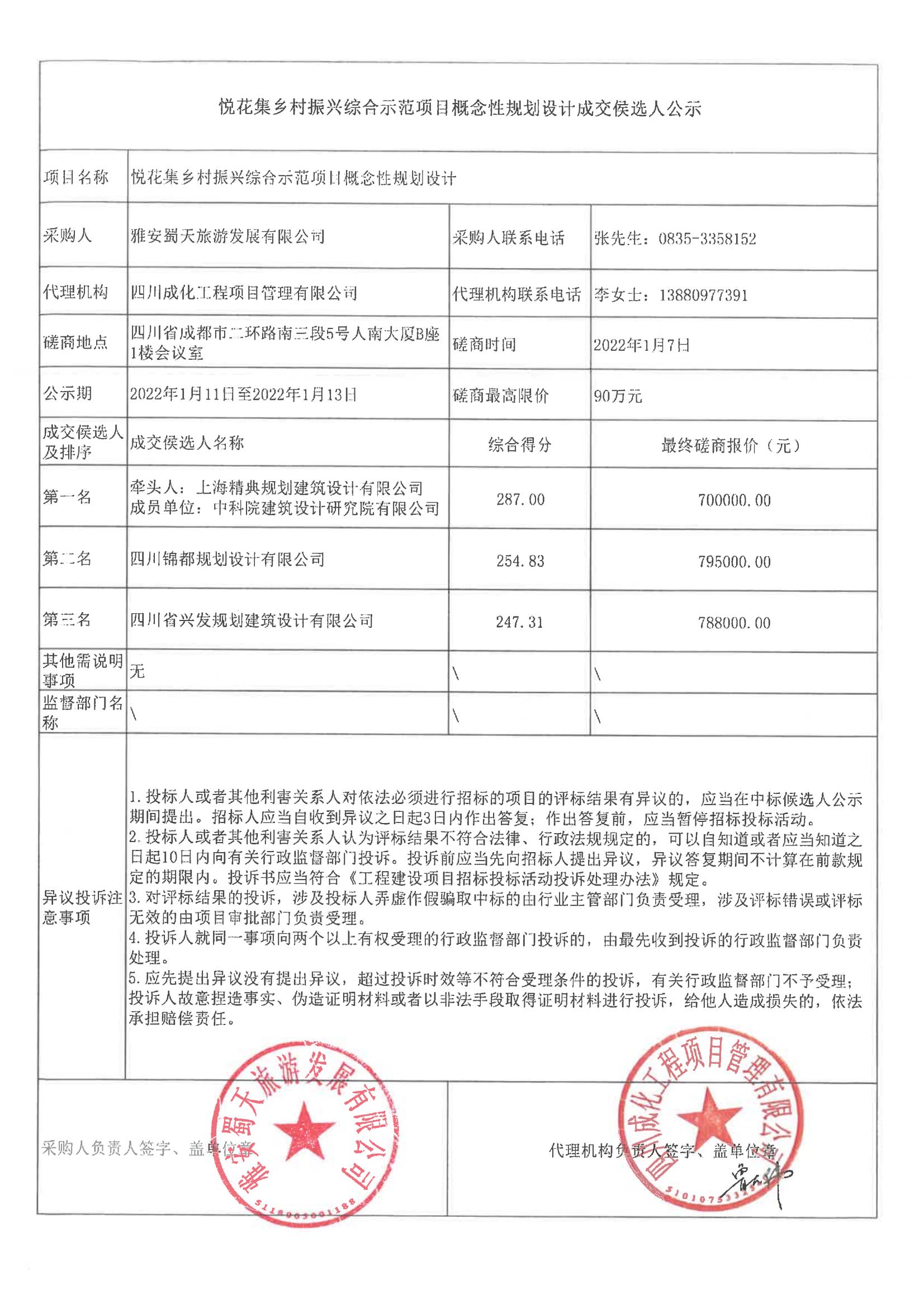 悦花集乡村振兴综合示范项目概念性规划设计成交候选人公示