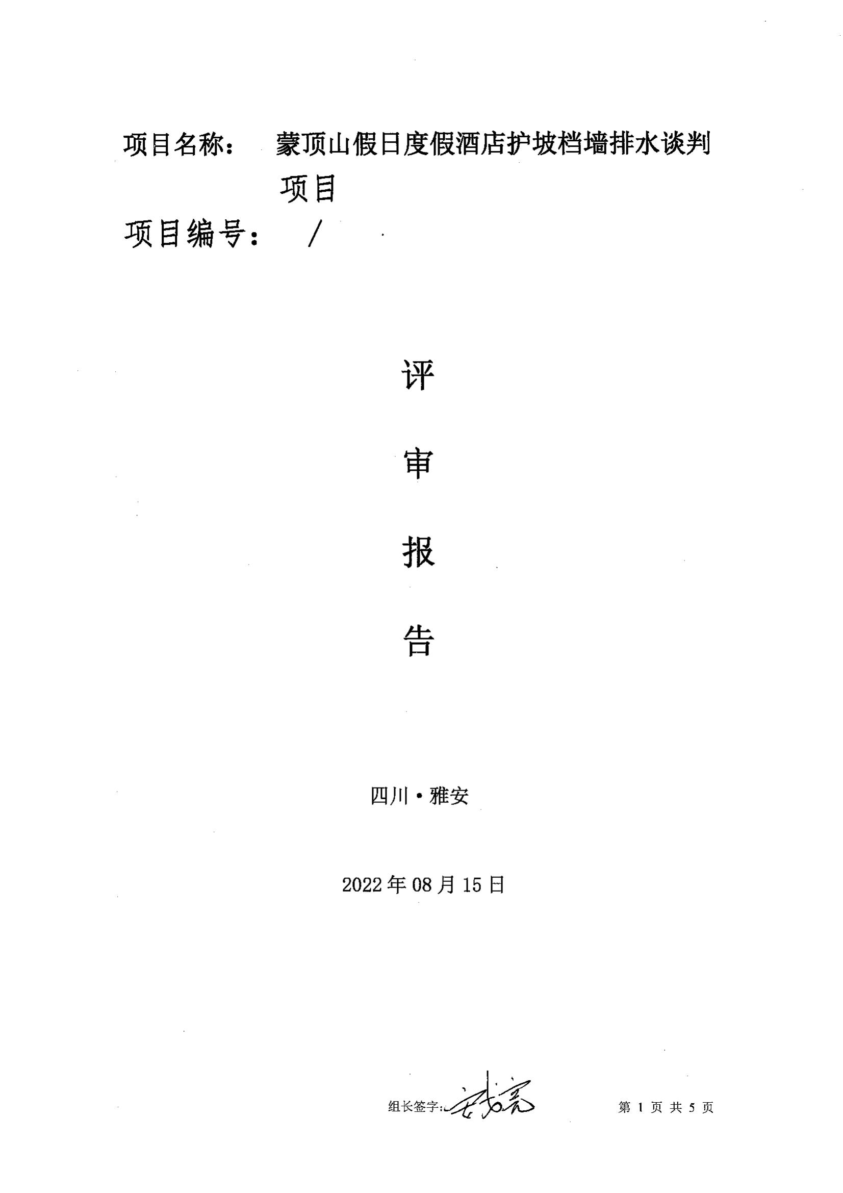 蒙顶山假日度假酒店护坡挡墙排水项目评审报告