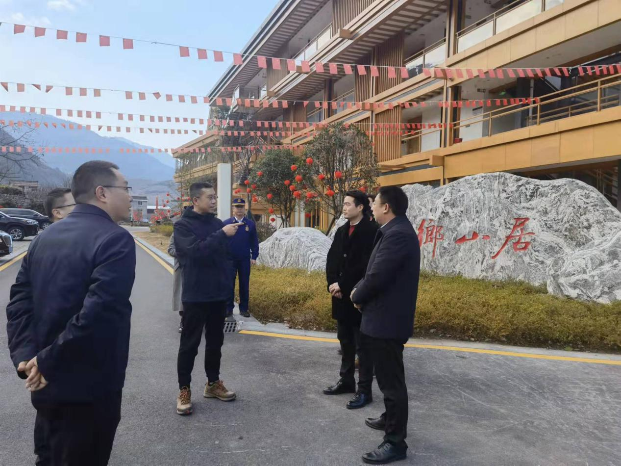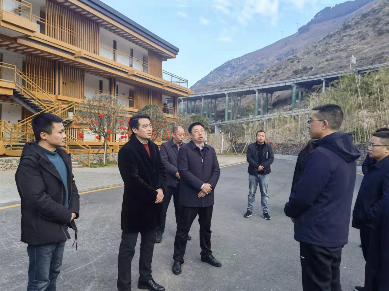 2月15日上午,雅安市人大常委会副主任、汉源县委书记郑朝彬一行调研梨乡山居项目。
