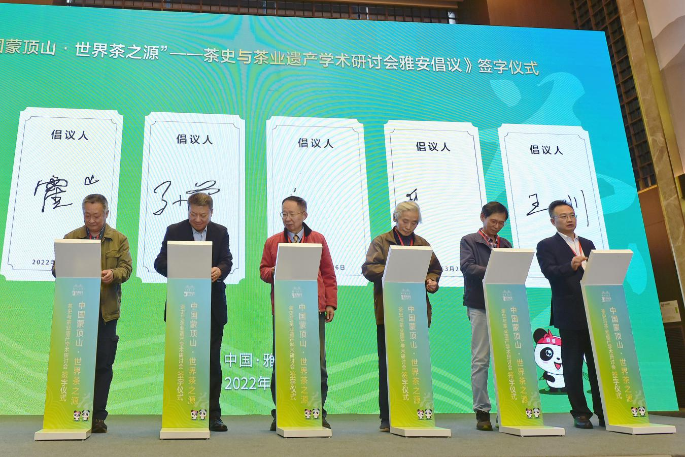研讨会现场,与会学术专家共同发出了《“中国蒙顶山·世界茶之源”——茶史与茶业遗产学术研讨会雅安倡议》,并就《“中国蒙顶山·世界茶之源”——茶史与茶业遗产学术研讨会共识》进行了精彩的学术及座谈交流。