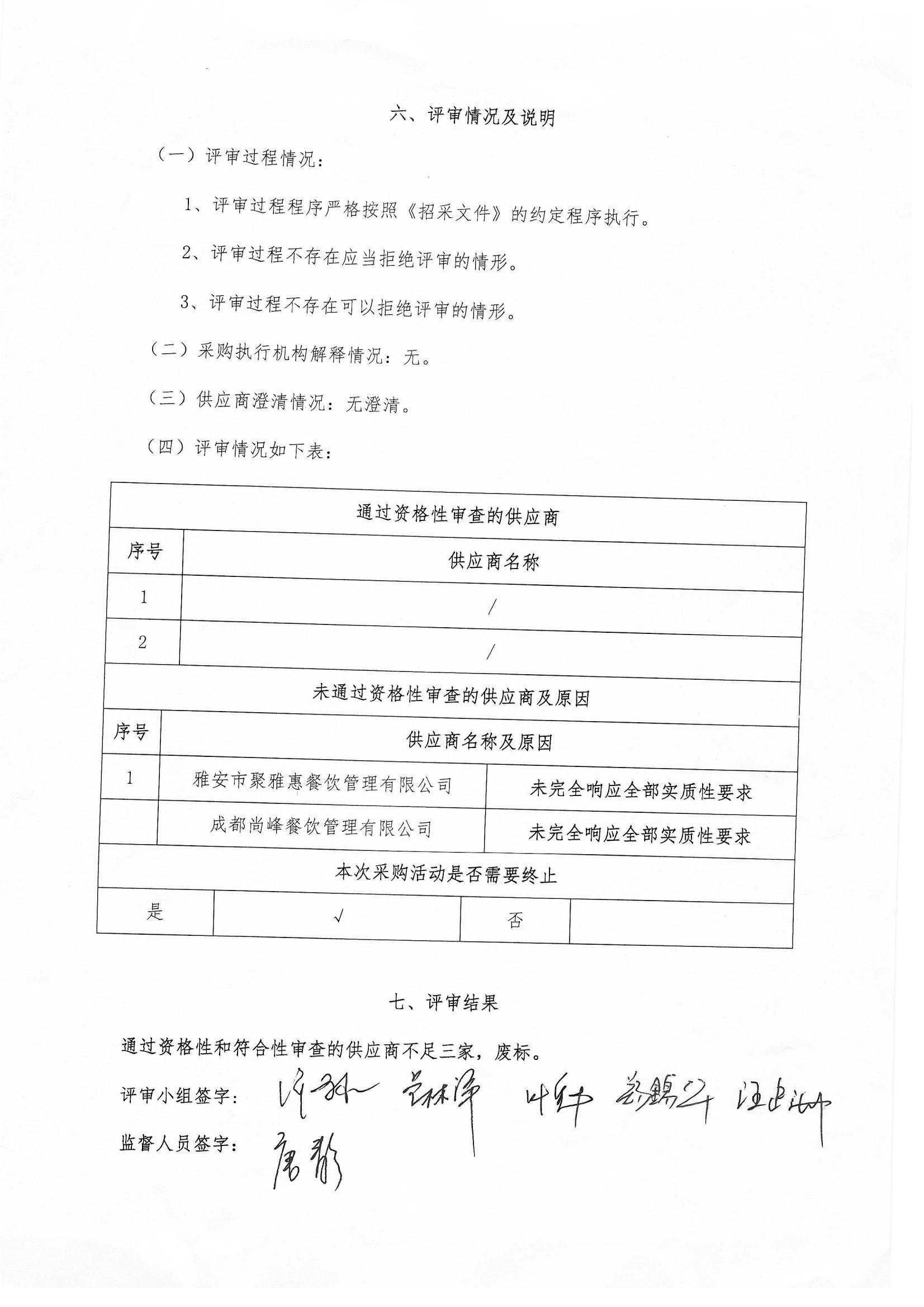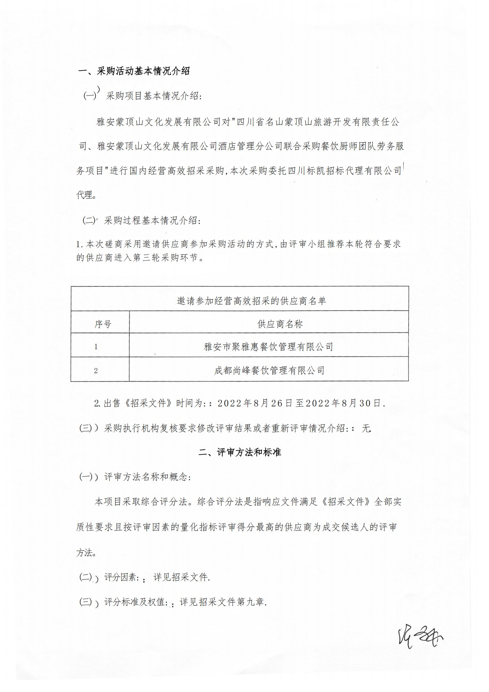 雅安蒙顶山文化发展有限公司酒店管理分公司联合采购餐饮厨师团队劳务服务项目评审报告