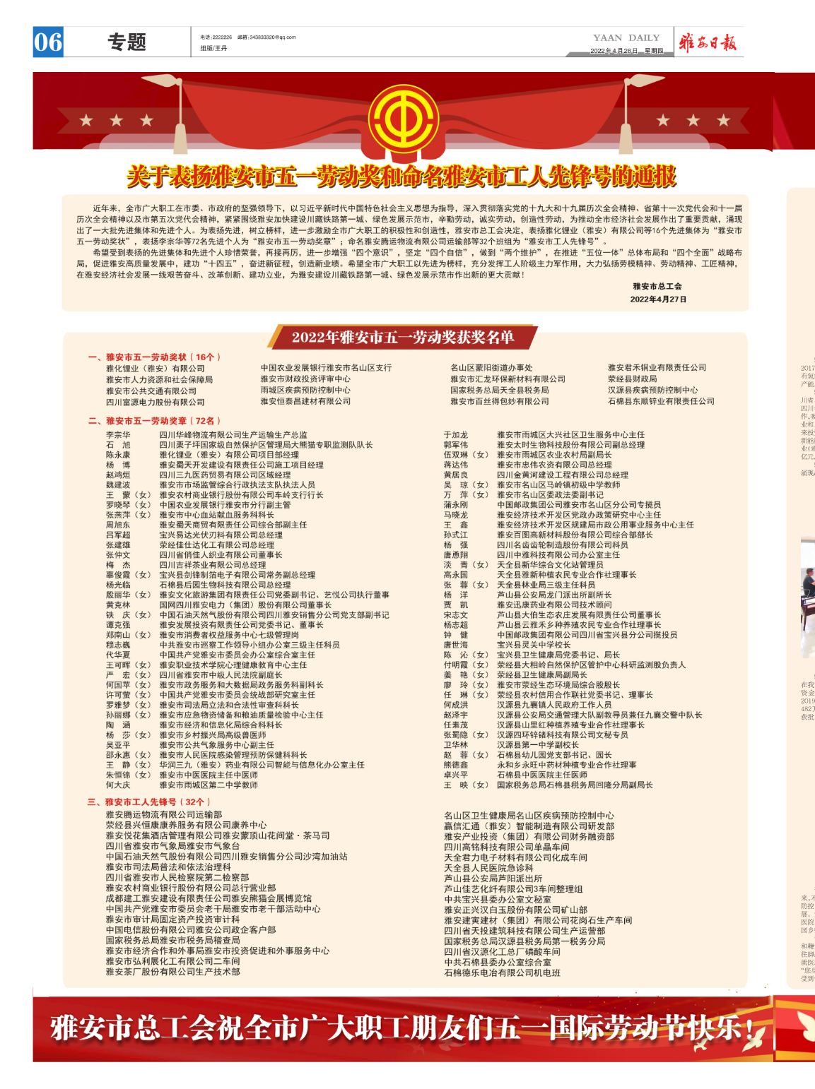欧美色情 党委副书记、艺悦公司执行董事殷丽华荣获“雅安市五一劳动奖章”,雅安悦花集酒店管理有限公司雅安蒙顶山花间堂·茶马司被命名为“雅安市工人先锋号”