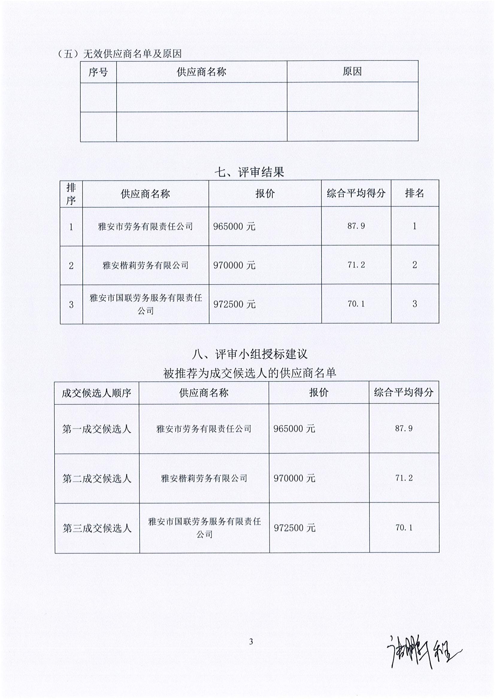 雅安蒙顶山文化发展有限公司酒店管理分公司 职工劳务外包服务采购项目评审报告