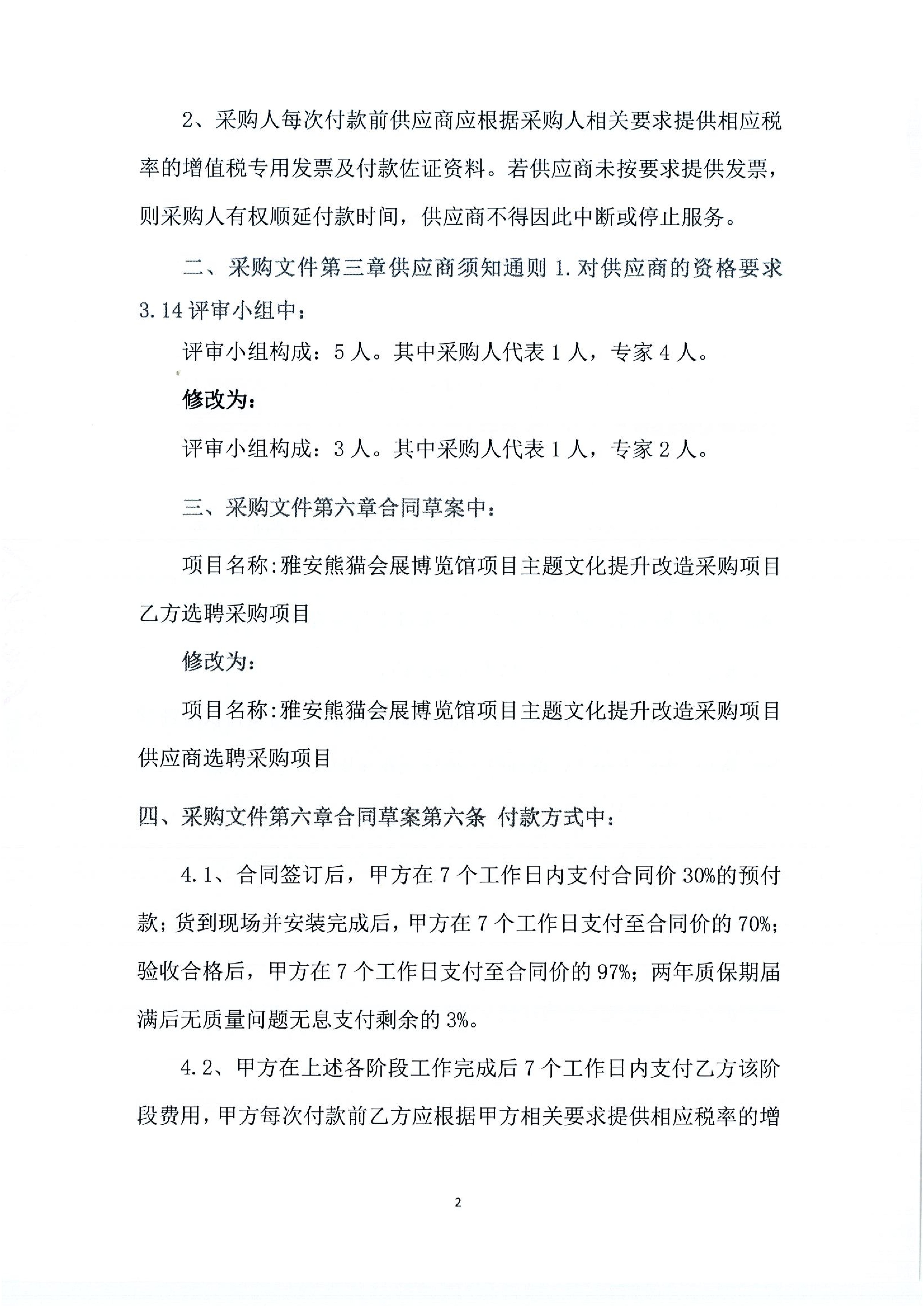 雅安熊猫会展博览馆项目主题文化提升改造采购项目供应商选聘采购项目-补遗书01号