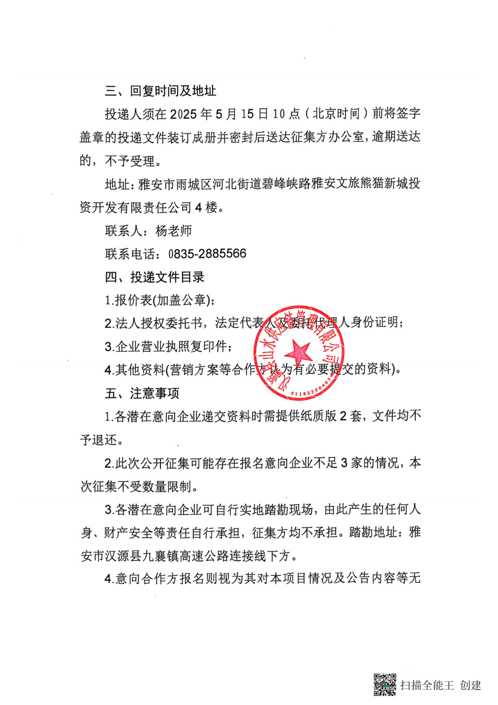 雅安文旅熊猫新城投资开发有限责任公司