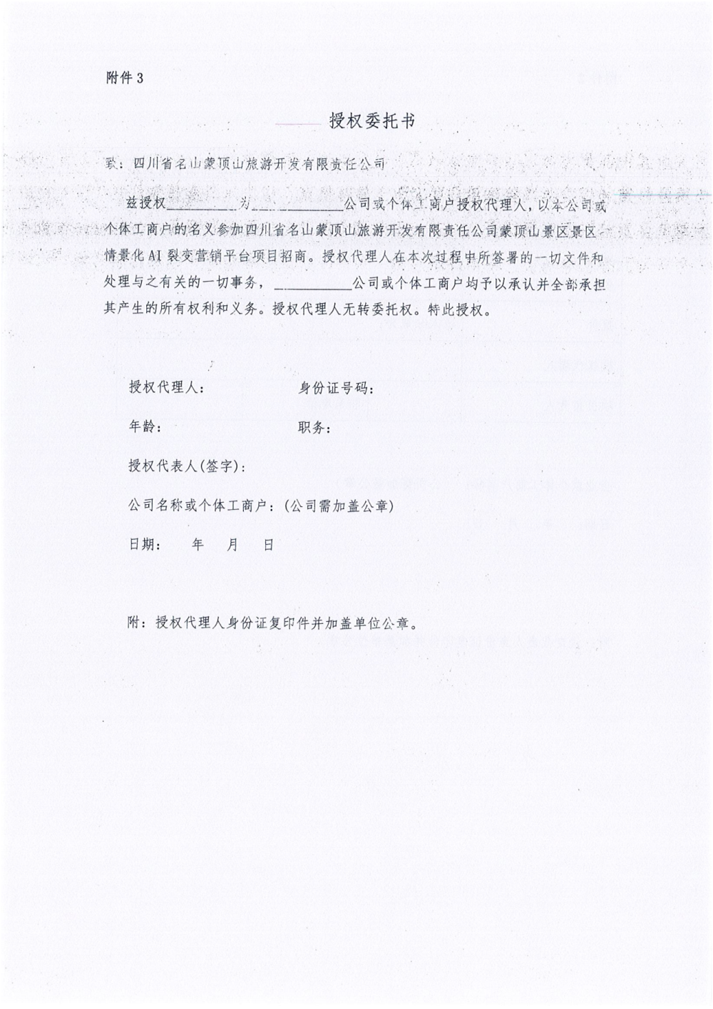 四川省名山蒙顶山旅游开发有限责任公司 景区情景化AI裂变营销平台项目招商