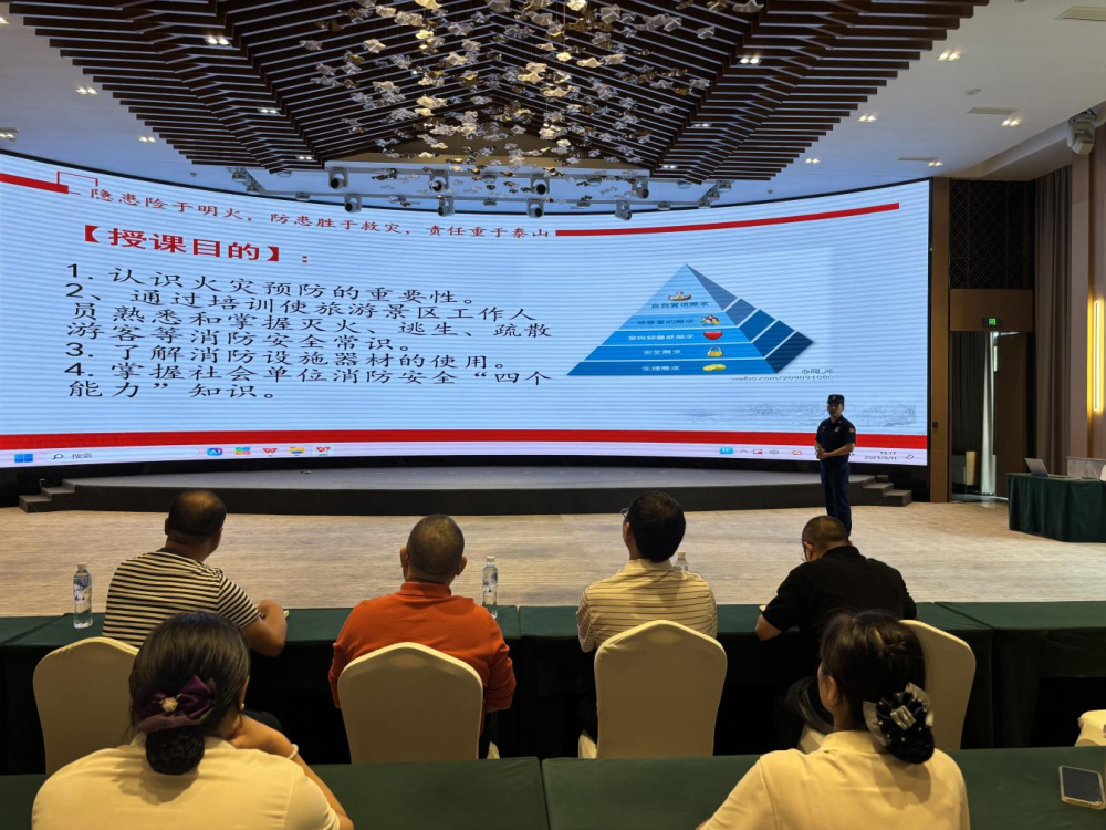 本次消防演练特别邀请名山区消防救援大队全程指导。消防救援人员详细讲解了消防器材的操作规范,重点示范了灭火器“摇、对、拔、压”四步法的使用技巧;同时结合近年来文旅场所典型火灾案例,深入剖析火灾成因,系统讲解预防措施,让员工对消防安全有了更直观且深刻的认识。随后,员工们在专业人员的指导下轮流实操,专注练习,精准瞄准火源根部、有效控制火势蔓延及彻底扑灭燃着物等关键动作,通过“专业培训+实战模拟”的沉浸式模式,进一步巩固了“预防为主、防消结合”的安全生产理念。