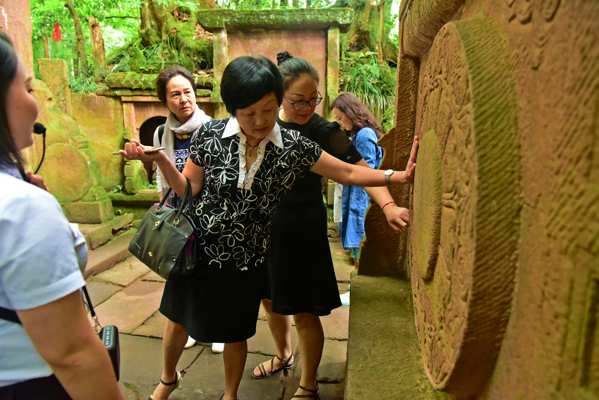 2019年7月3日上午10点,由四川省文化和旅游厅二级巡视员、非物质文化遗产处处长林彤带队,非物质文化遗产处副处长王龙、非物质文化遗产处二级调研员张静一行莅临蒙顶山考察调研蒙顶山茶传统制作技艺,推进申报非物质文化遗产事宜。考察调研组一行先后参观了茶神殿、龙墙浮雕、甘露井、皇茶园等核心景点,深入了解了蒙顶山底蕴深厚的茶祖文化、辉煌灿烂的贡茶文化后,在天盖寺前观看蒙顶山手工茶现场炒制技艺。